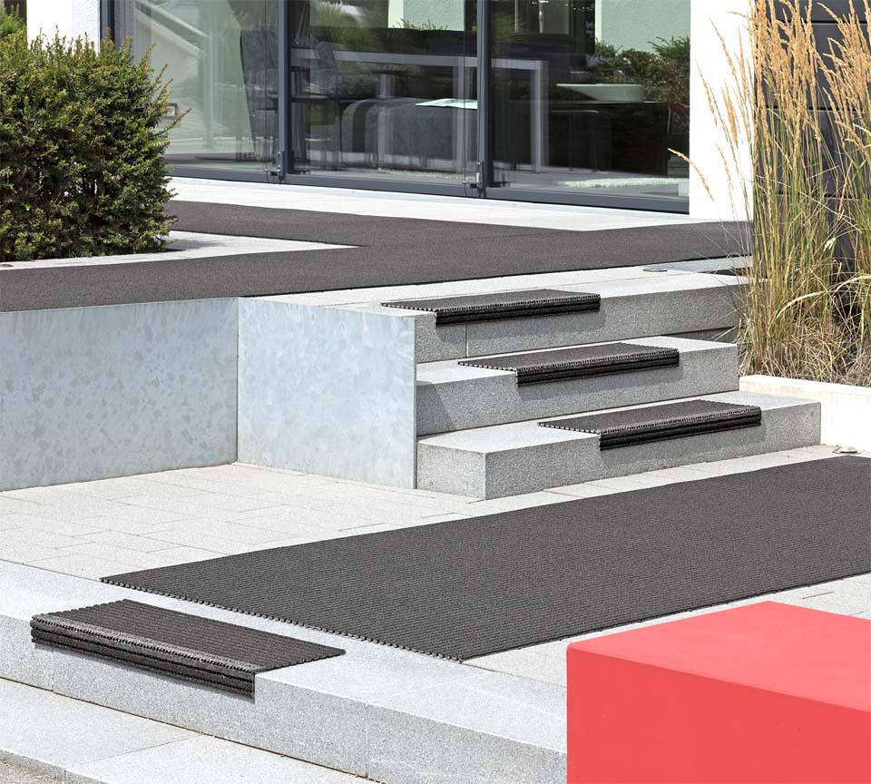 A special eye catcher, the Outdoor-Mat AKO UNICO combines safety and elegance in front of entraces, on balconies or terraces.