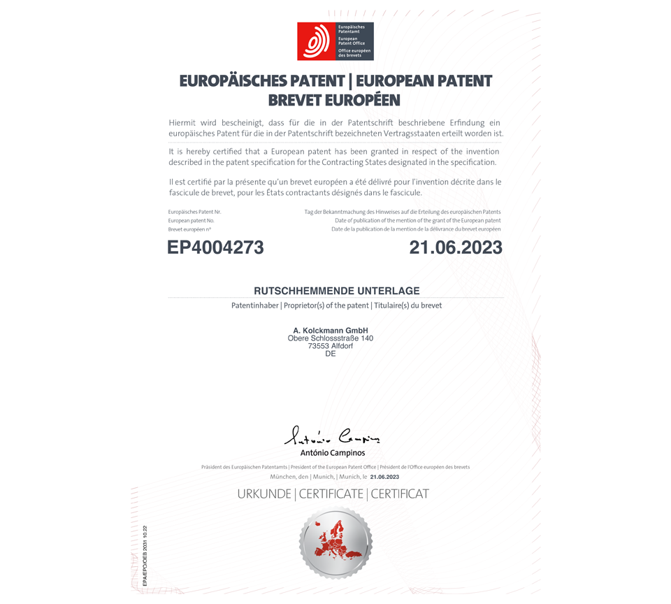 Standing still means to go backwards, this is why we are not standing still, but keep on working. Our determination to find new solutions for the anti-slip mats helped us to obtain another patent.